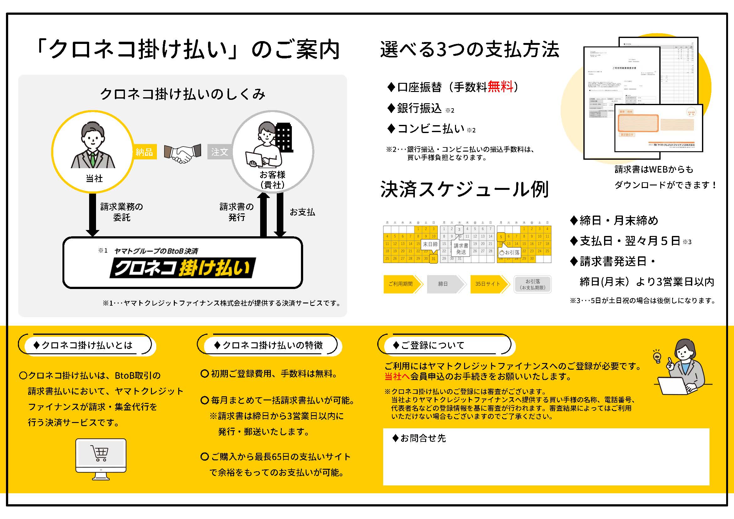 ヤマトクレジットファイナンスが請求・集金代行を行う決済サービスです